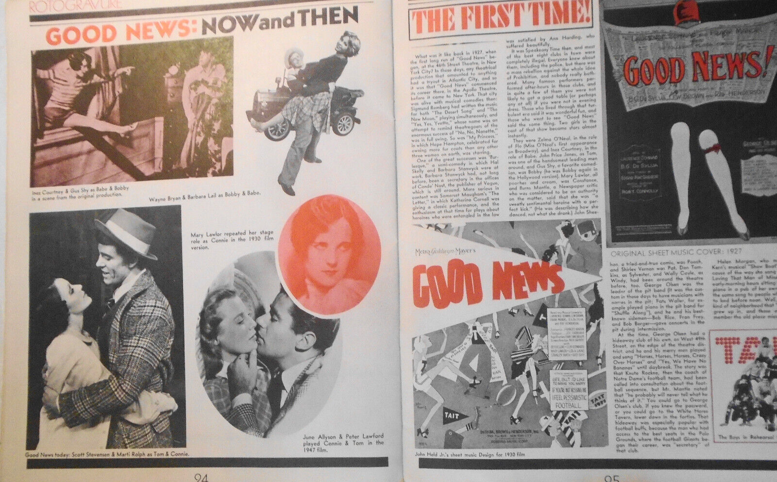 Rare 1974 Souvenir Program for Broadway musical revival show "Good News" -- SIGNED by Alice Faye, Stubby Kaye, Scott Stevensen, and Barbara Lail.