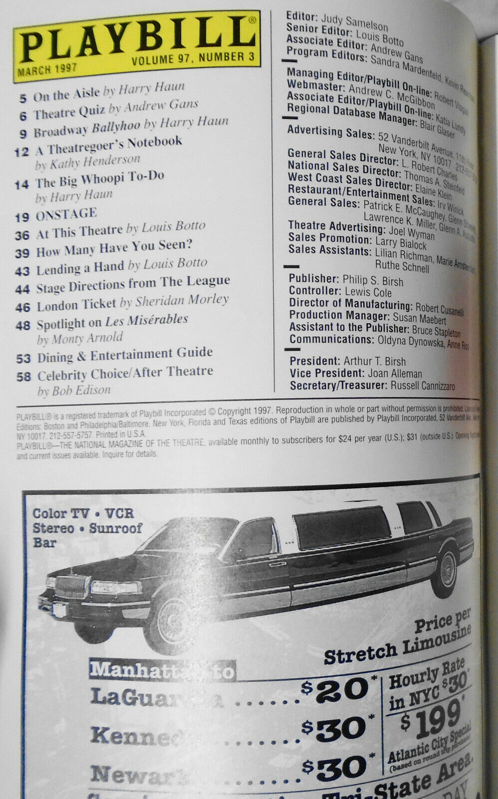 SIGNED Joseph Gabriel, Magic On Broadway - Playbill - March 1997 - Vol 97, No 3