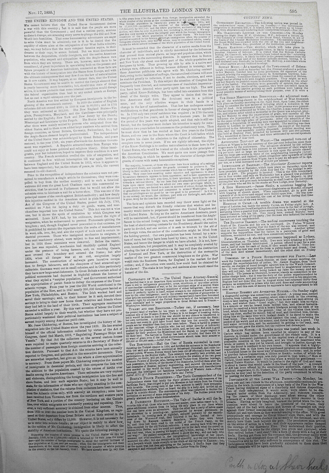Original page witrh story and 3 prints, from The Illustrated London News, November 17, 855