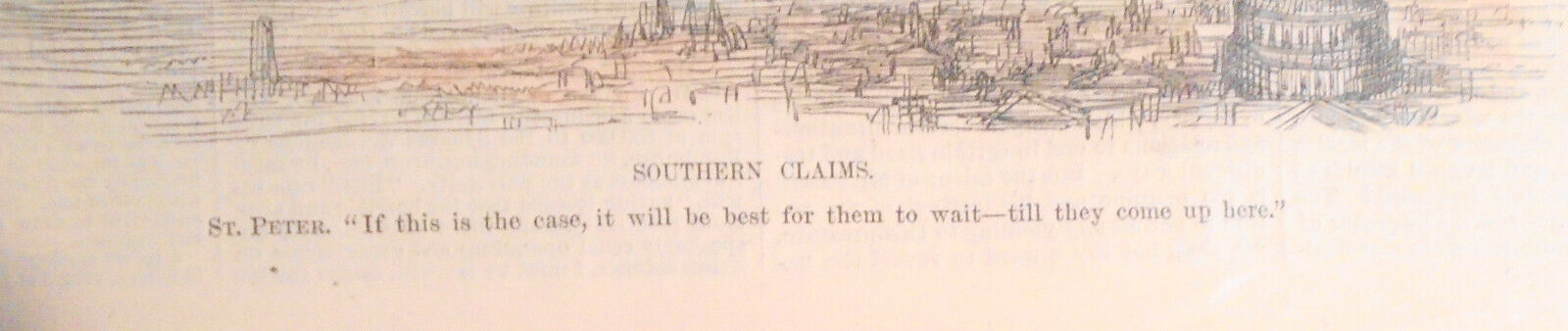 Shows: St. Peter at the entrance to heaven, doubts southern claims