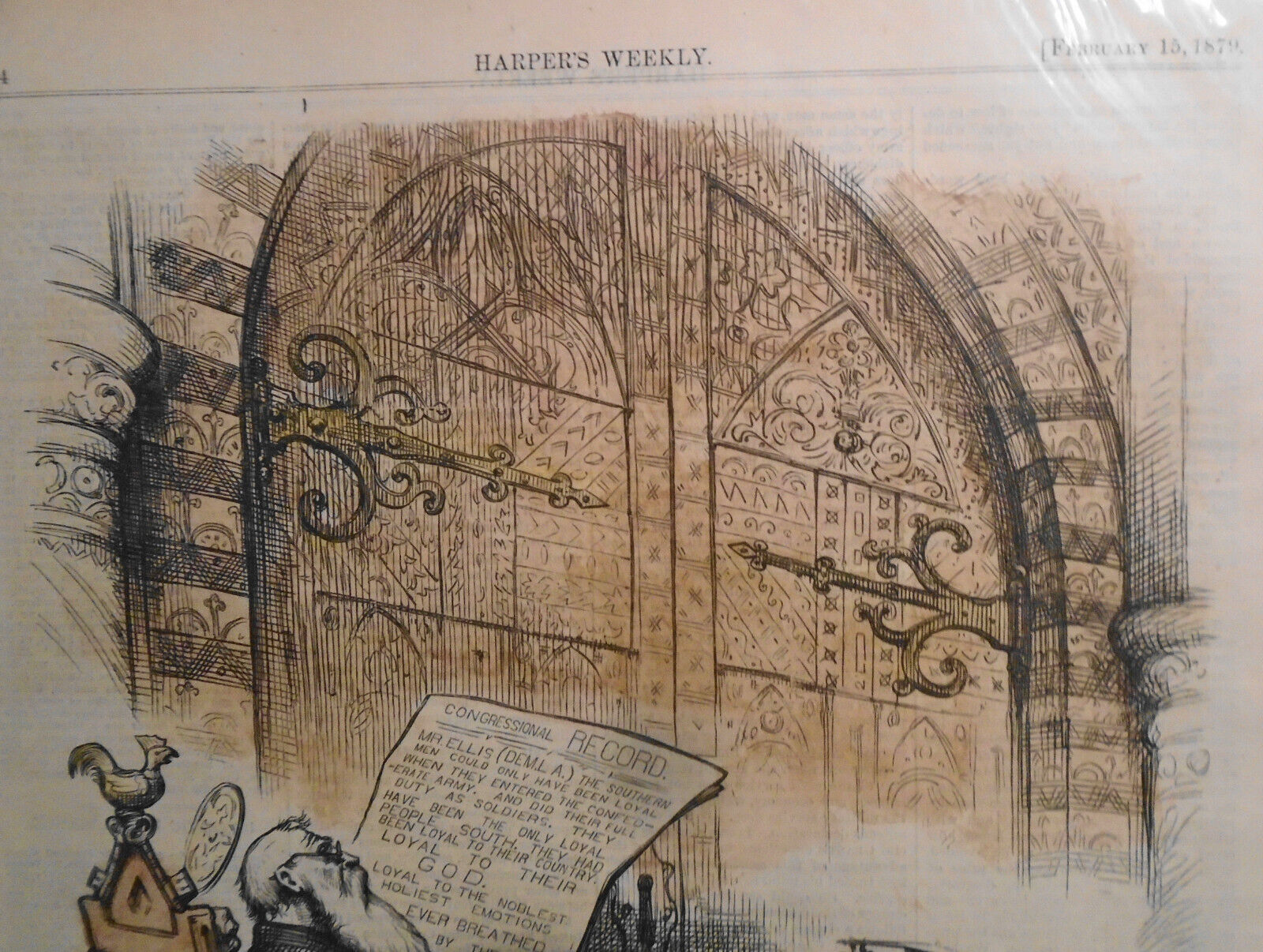 ORIGINAL FULL PAGE HAND-COLORED PRINT - "Southern Claims" -- by Thomas Nast - February 15, 1879.