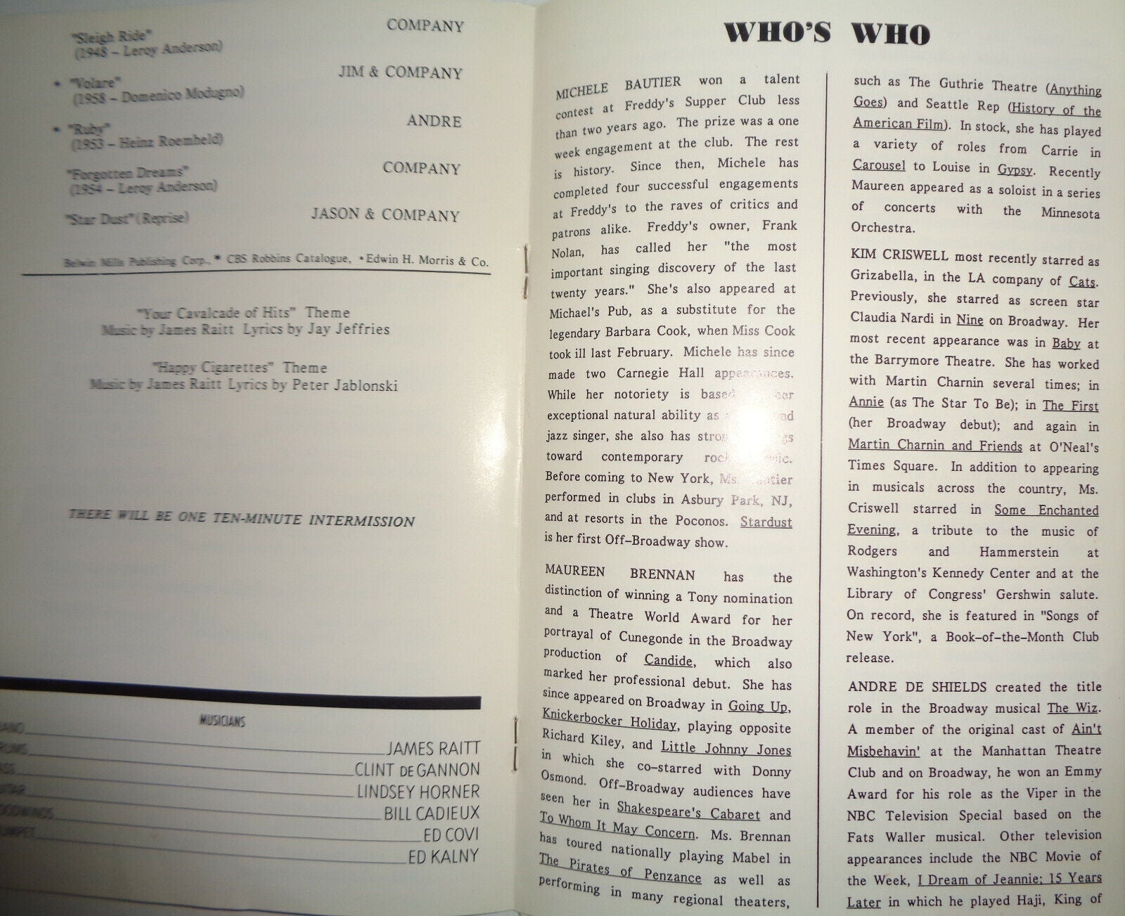 STARDUST - PROGRAM - THEATRE OFF PARK, 1986 Off-Broadway