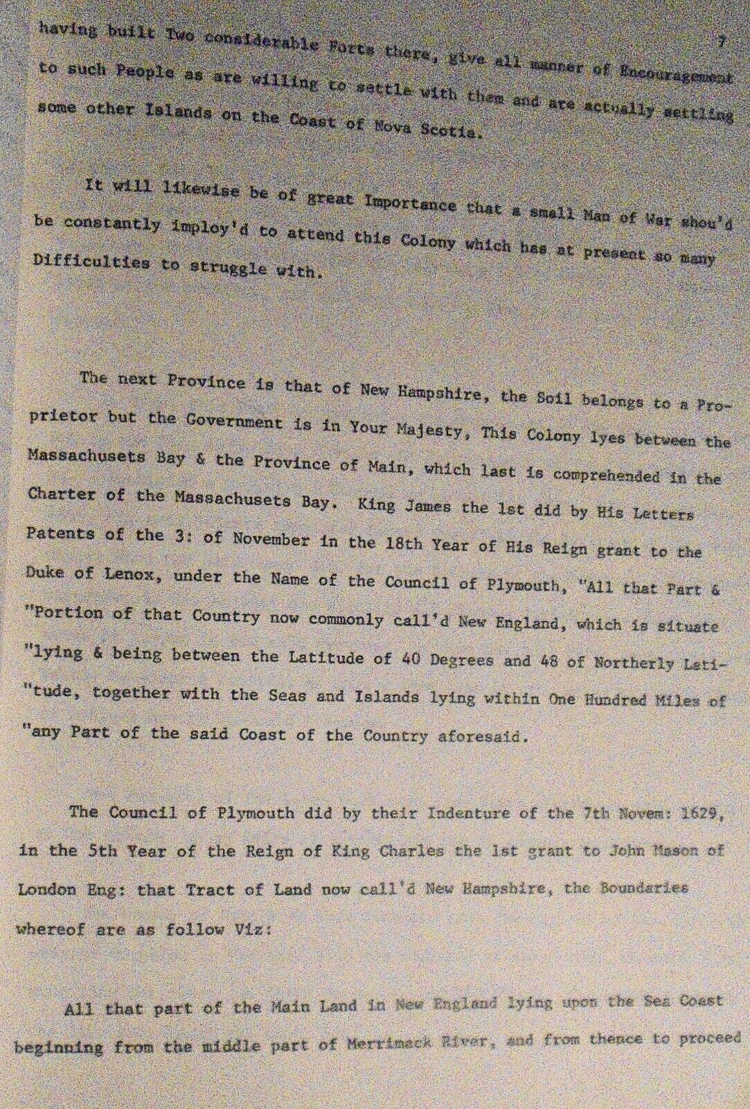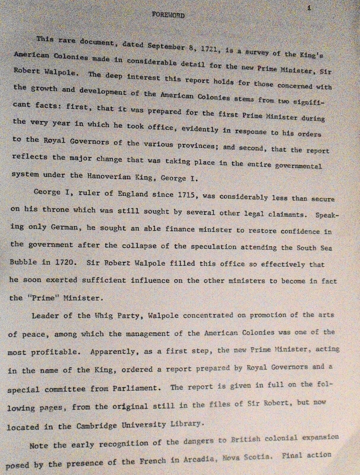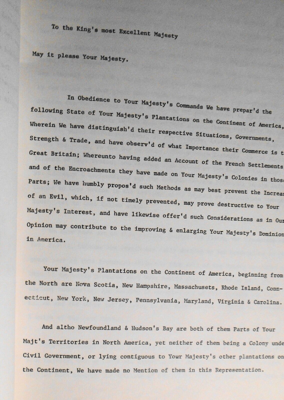 State of Your Majesty's Plantations on the Continent North America 1721 - TYPED