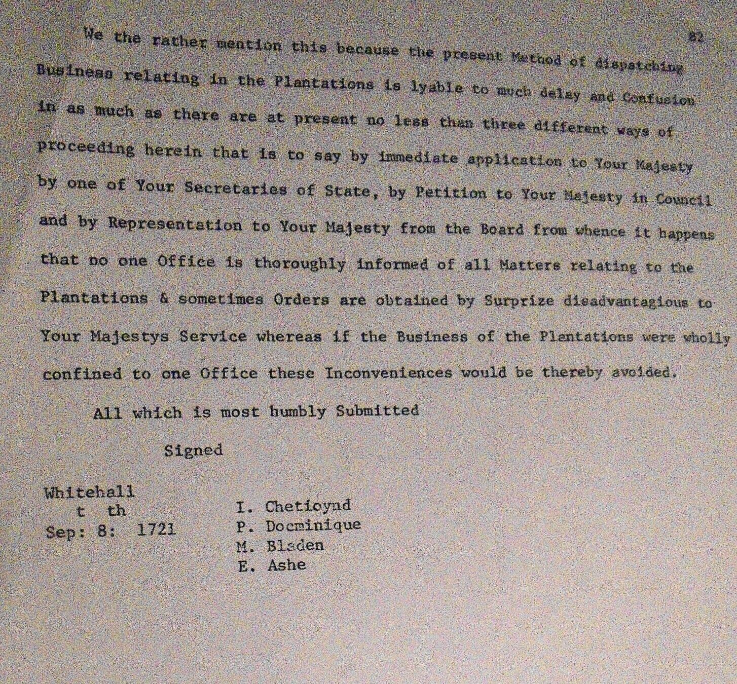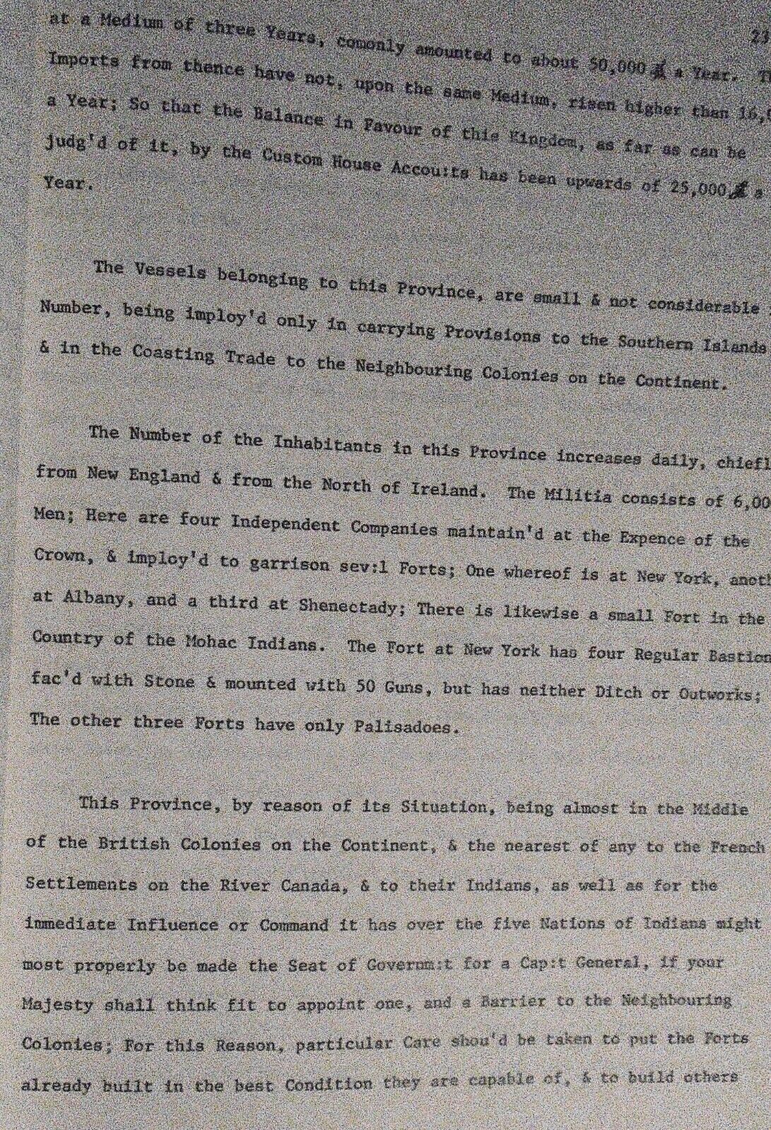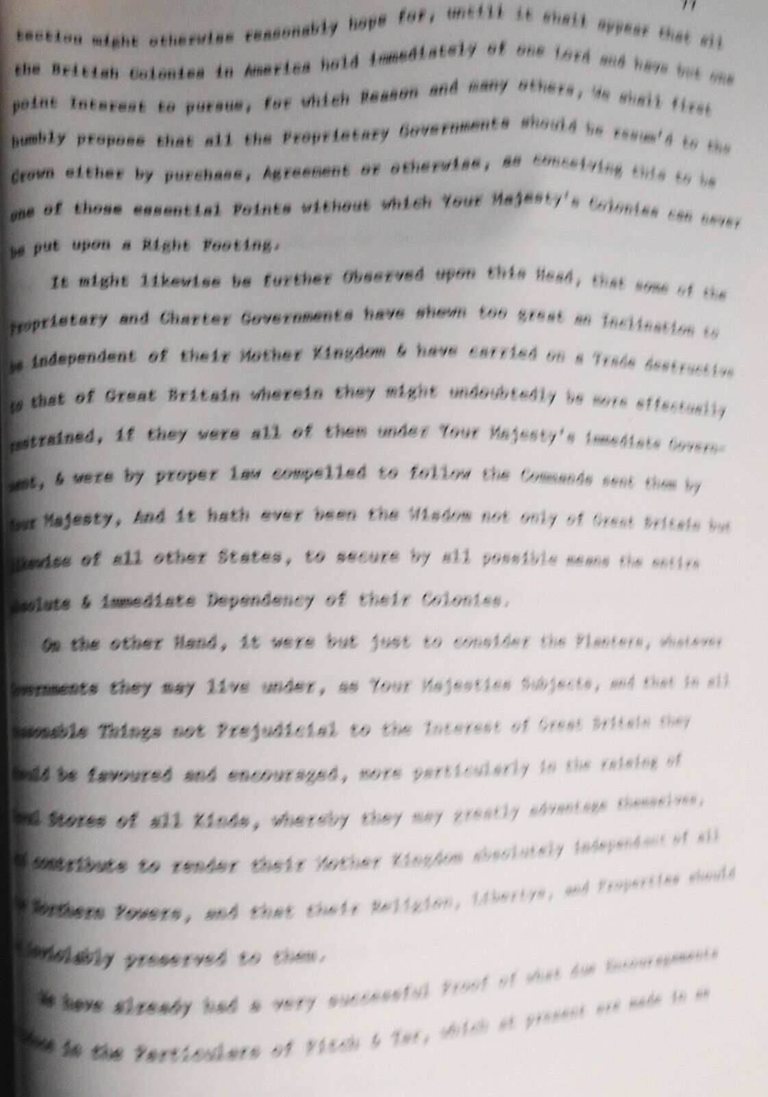 State of Your Majesty's Plantations on the Continent North America 1721 - TYPED