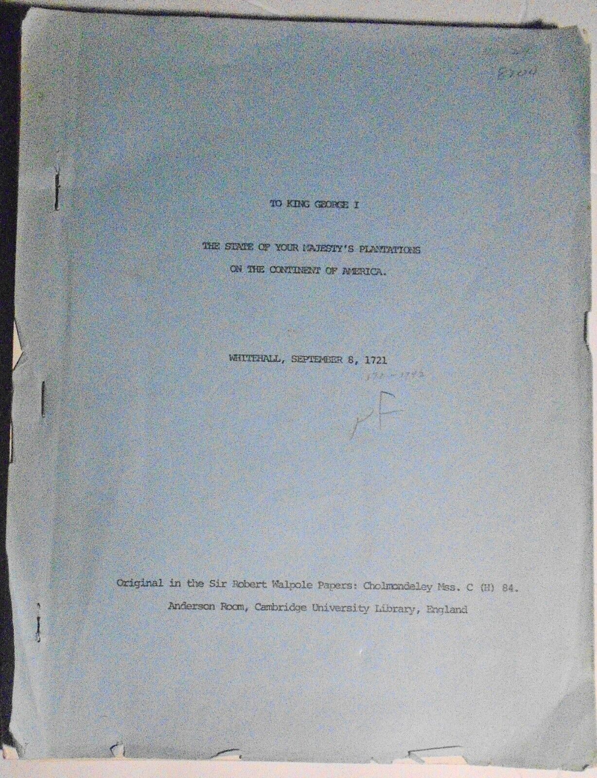 State of Your Majesty's plantations on the continent of America : an original report to the British Crown, 1721