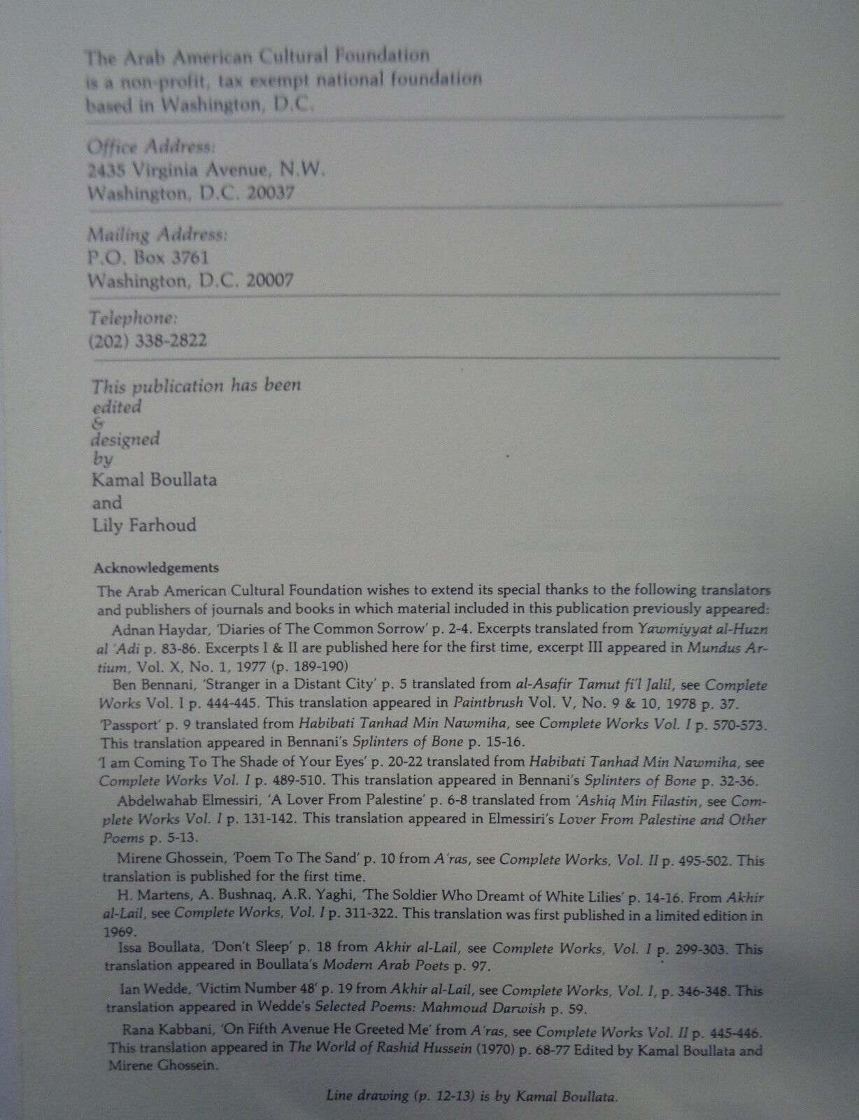 Washington, D.C. Arab American Cultural Foundation, 1981. First Edition. Softcover; First Printing.