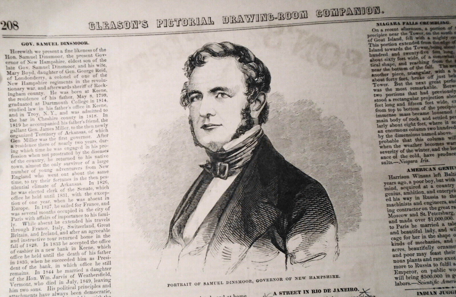 JANEIRO--GRAND ENTRANCE TO THE CITY OF THE EMPEROR OF BRAZIL. ON SAME PAGE IS PORTRAIT OF SAMUEL DINSMOOR, GOVERNOR OF NEW HAMPSHIRE Folio.