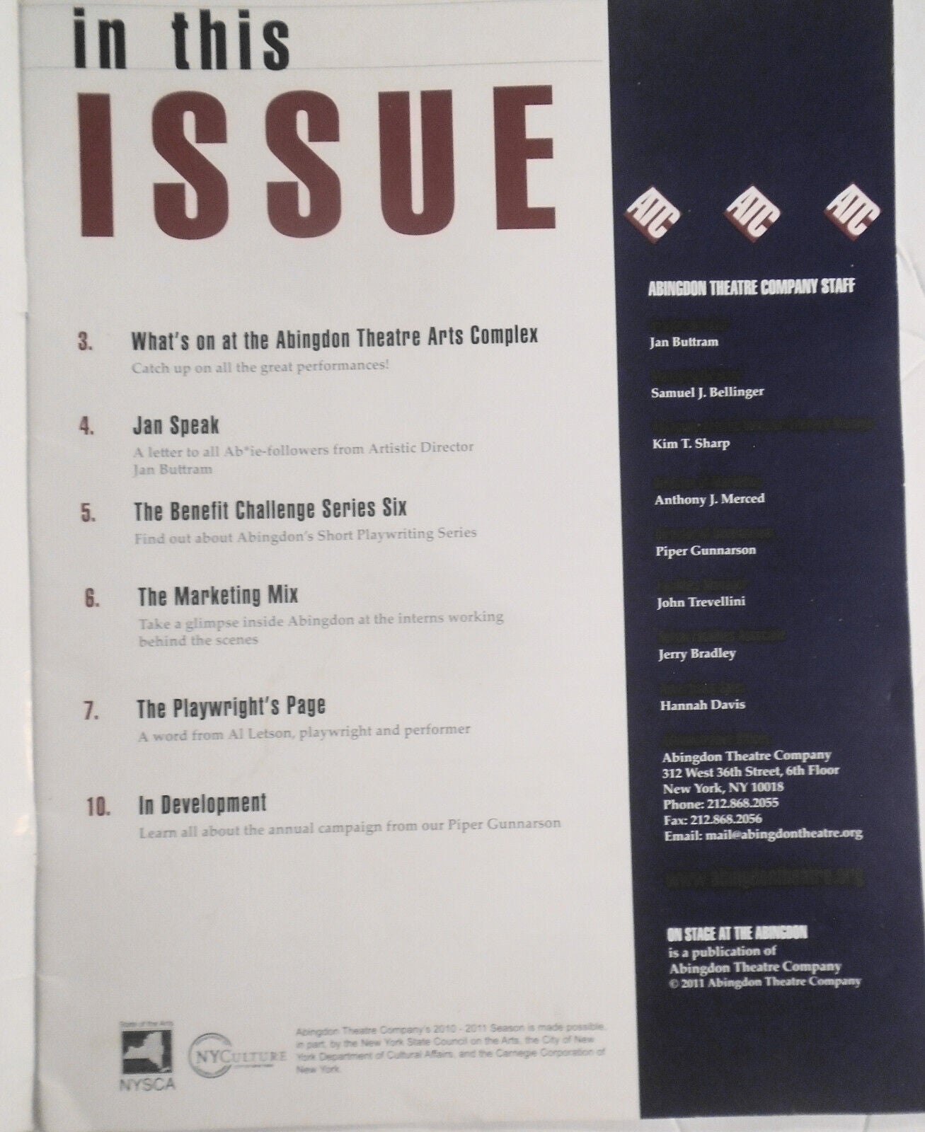 Summer in Sanctuary, by Al Letson - Dorothy Strelsin Theatre March 25 - April 17, 2011 - Souvenir program & 2 inserts. New York Premiere.