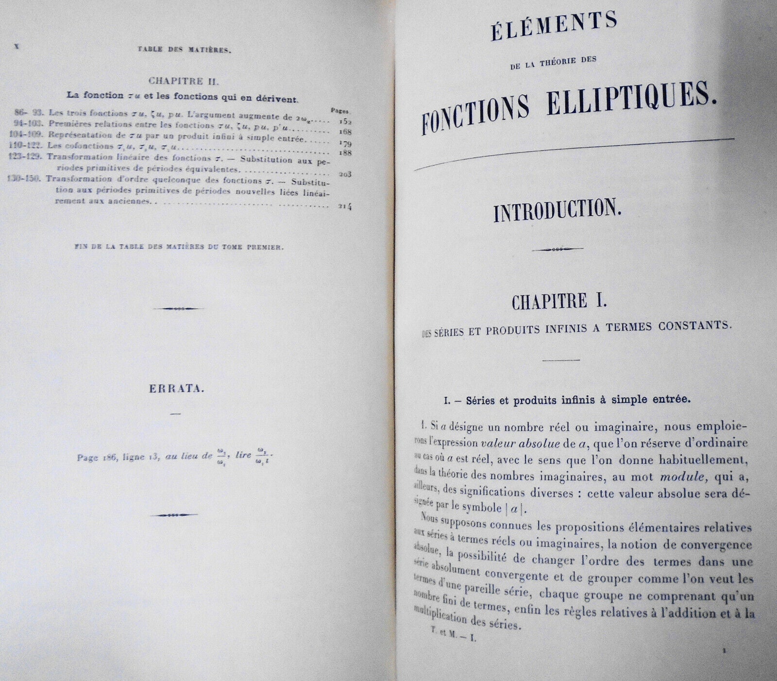 Tannery: Elements De La Theorie Des Fonctions Elliptiques Tome 1, 4 - 1893, 1902