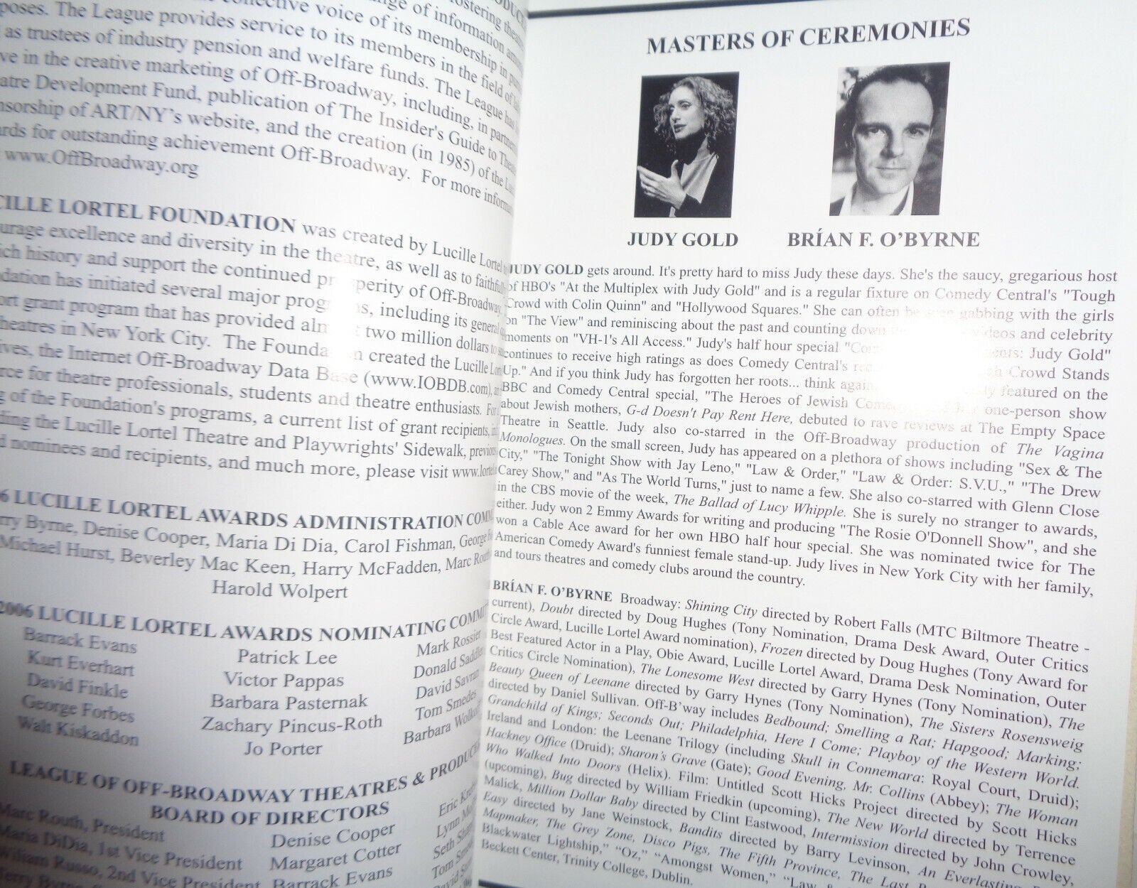 THE 21ST ANNUAL LUCILLE LORTEL AWARDS - SOUVENIR PROGRAM - MAY 1st, 2006