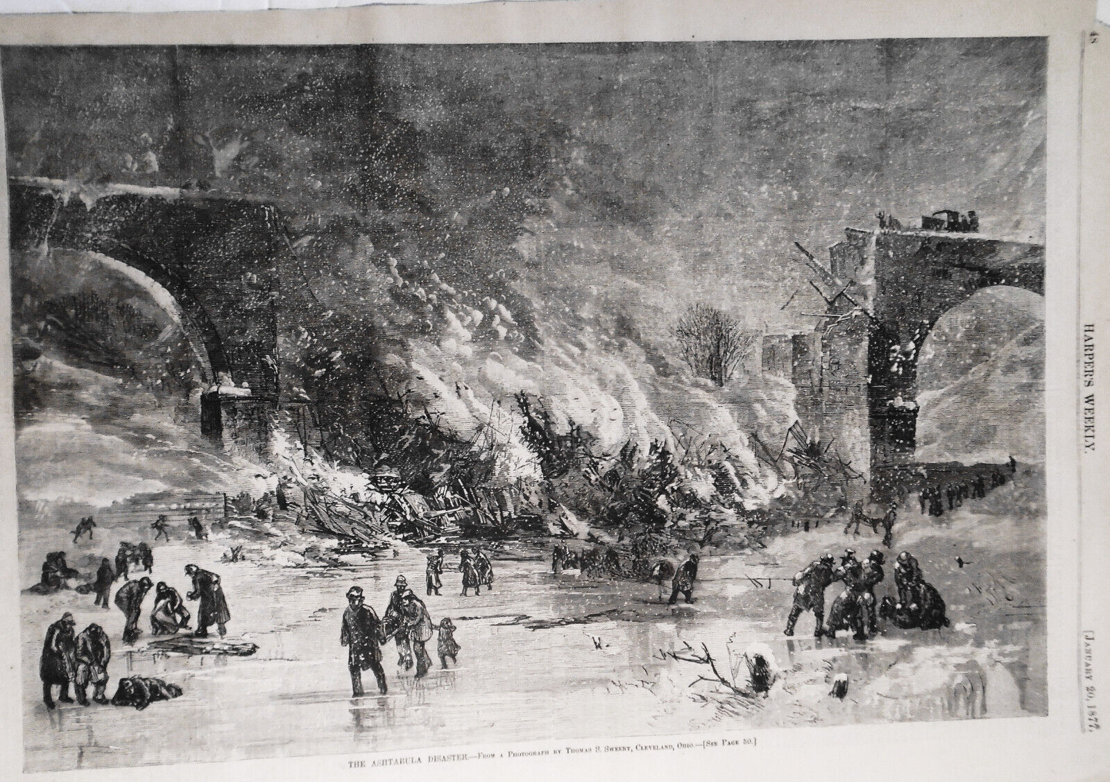 The Ashtabula Disaster. Harper's Weekly 1877. Original print.