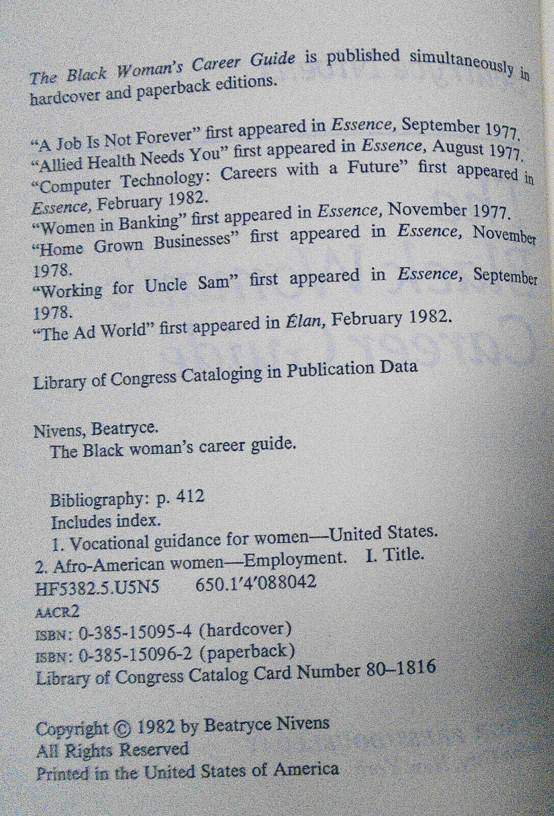 The Black woman's career guide, by Beatryce Nivens - SIGNED and inscribed by author.