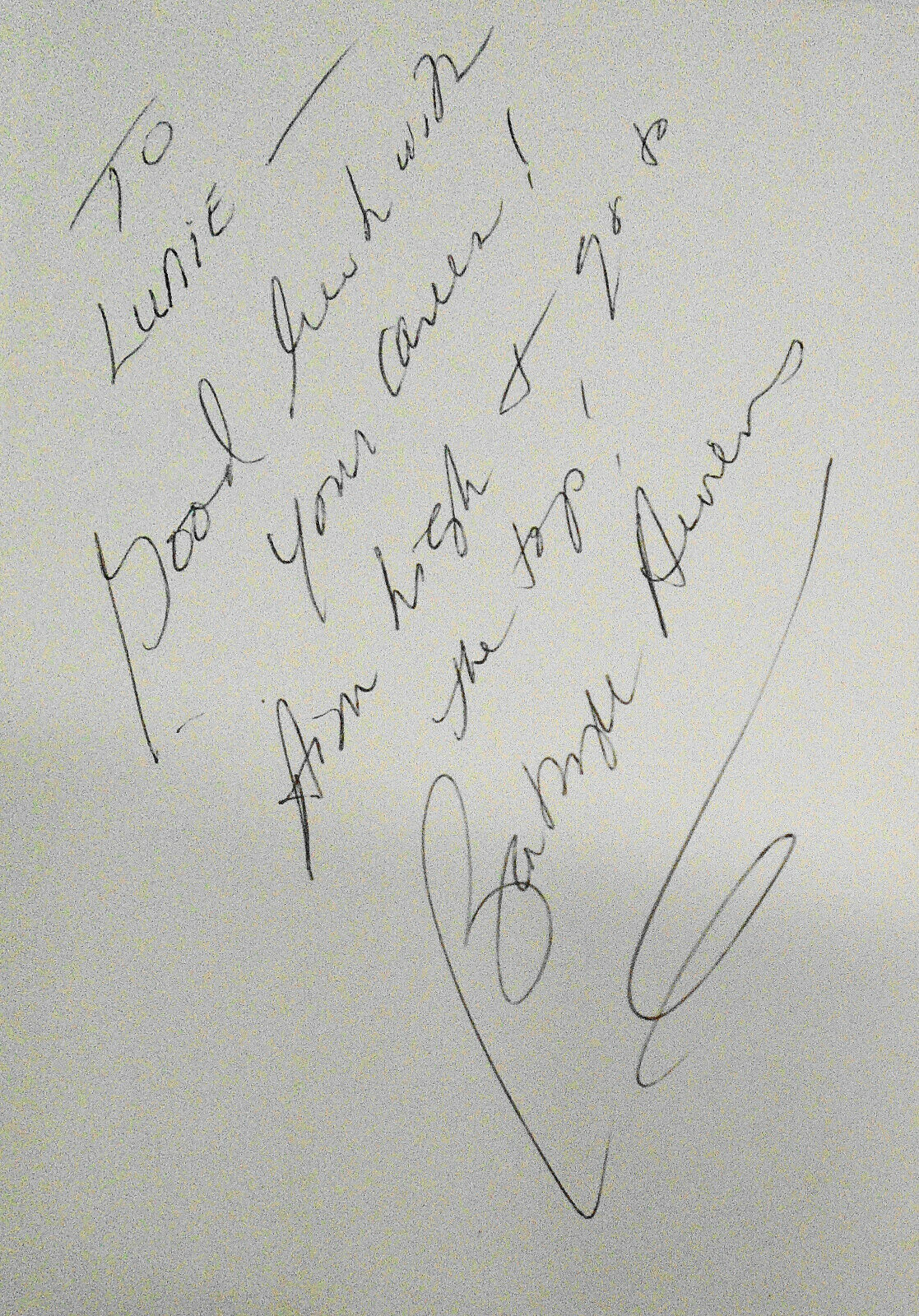 Signed / Inscribed: "To Lunie-- Good Luck With Your Career! Aim High & Go To The Top! Beatryce Nivens!"