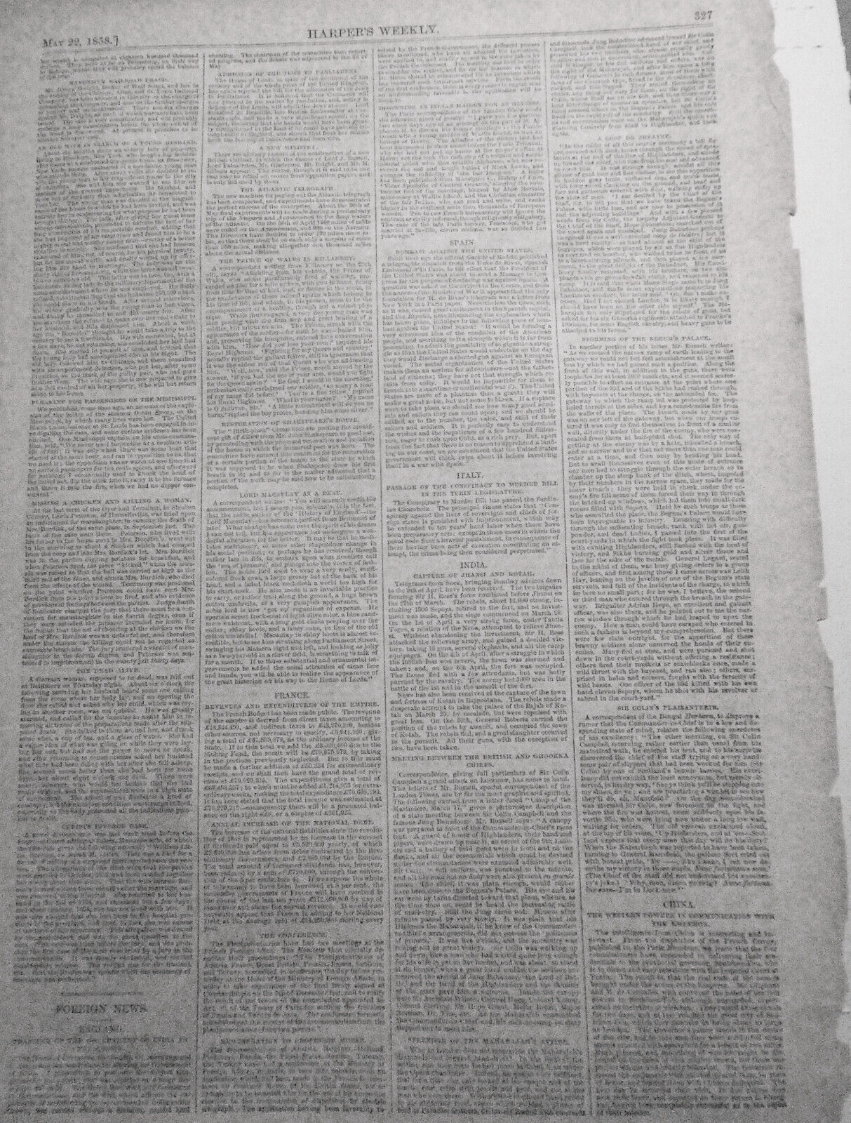 "The Boston Common", by Winslow Homer (American, 1836-1910) - 4-page section of Harper's Weekly, 5/22/1858 on "Life in Boston".
