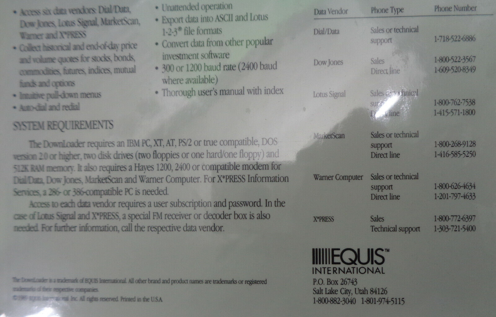 The Downloader, by Equis International 1989. IBM PC, XT, AT... BRAND NEW, SEALED