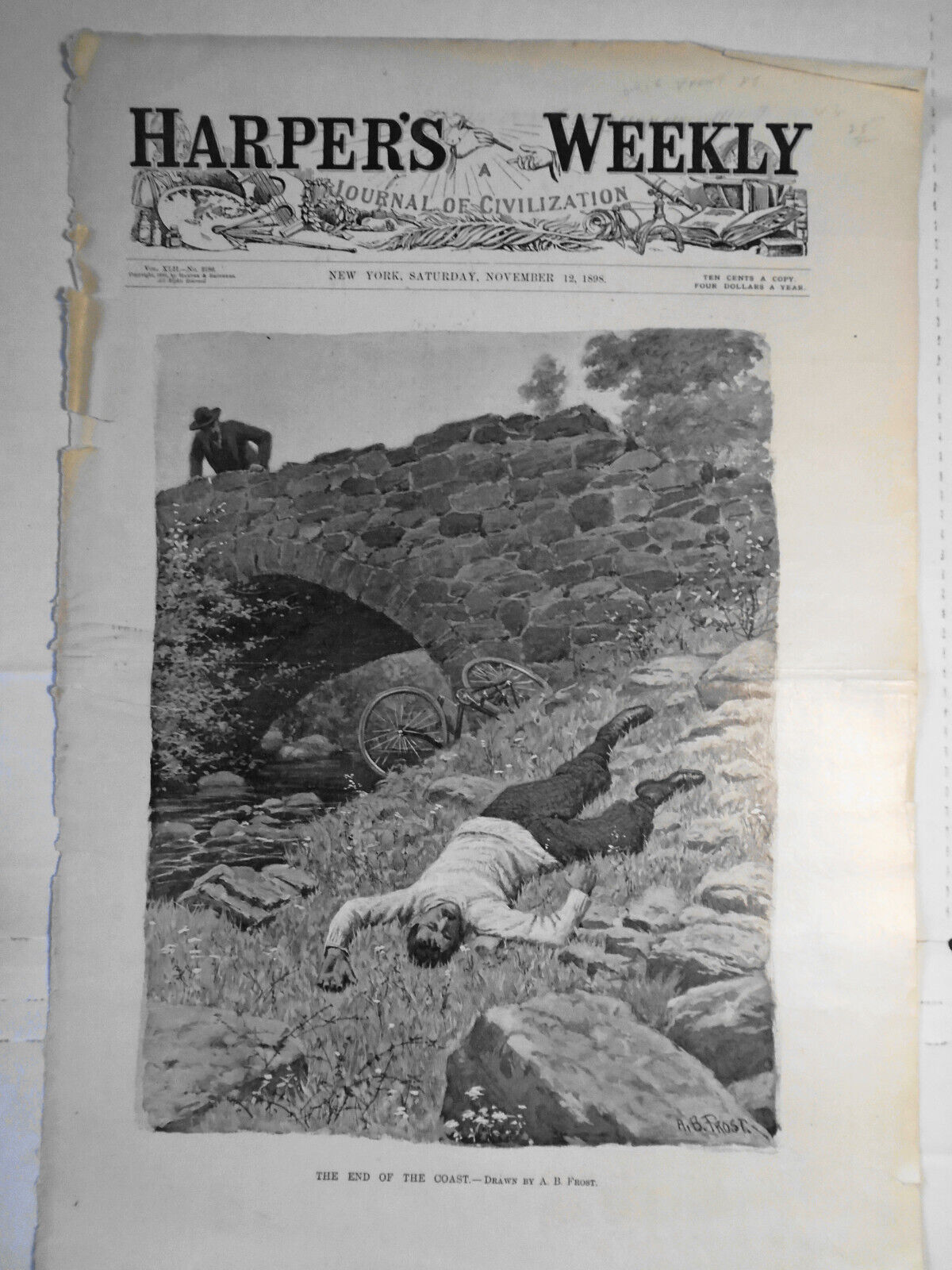 HARPER'S WEEKLY-- ORIGINAL FULL FRONT PAGE PRINT:"THE END OF THE COAST..." - NOVEMBER 12, 1898