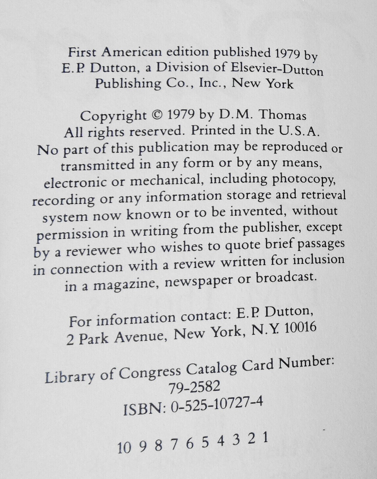 The Flute-player : a novel, by D M Thomas. 1979. First Edition. Fine/Fine.