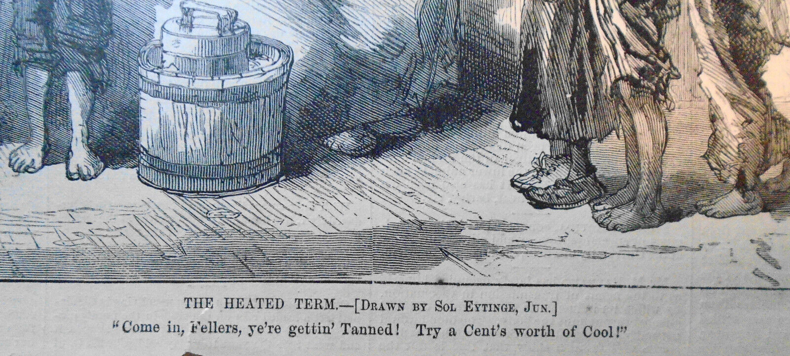 HARPER'S WEEKLY - ORIGINAL, 1/2 PAGE PRINT - THE HEATED TERM - JULY 28, 1877