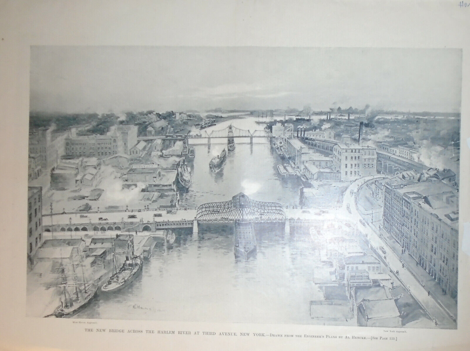 The New Bridge Across Harlem River at Third Avenue, New York - Harper's Weekly, February 3, 1894 - original full page print.