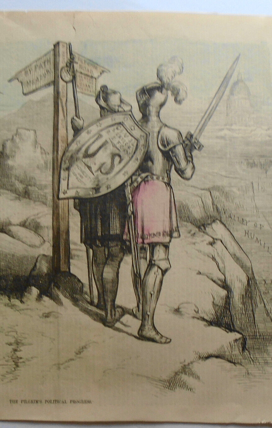 ORIGINAL FULL PAGE HAND-COLORED PRINT - "The pilgrim's political progress", by Thomas Nast.