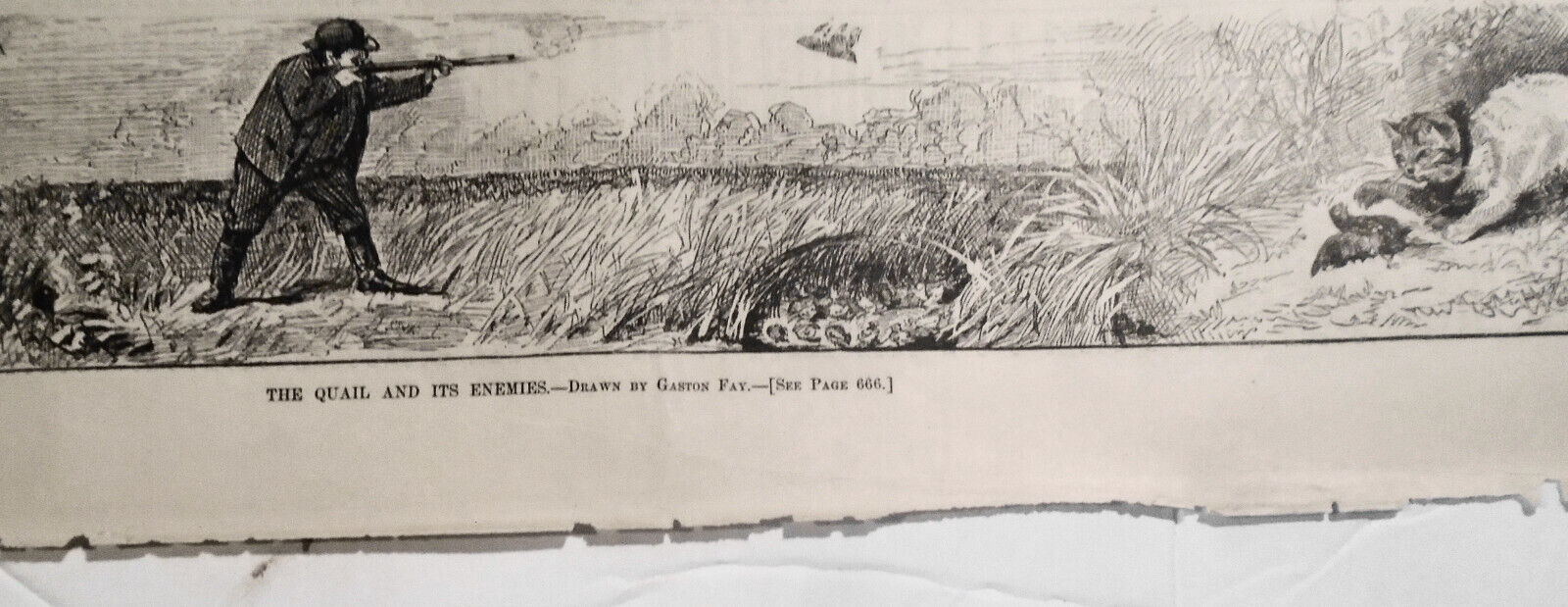 The Quail and its Enemies, by Gaston Fay - Harper's Weekly, 1880, original print
