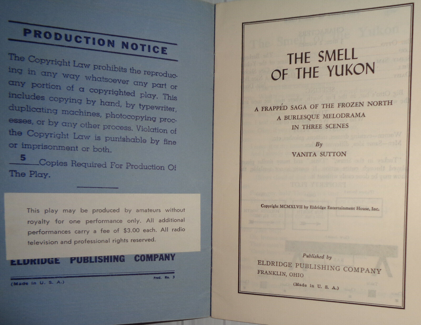 The smell of the Yukon : a frappéd saga of the frozen north : a burlesque melodrama in three scenes, by Vanita Sutton.