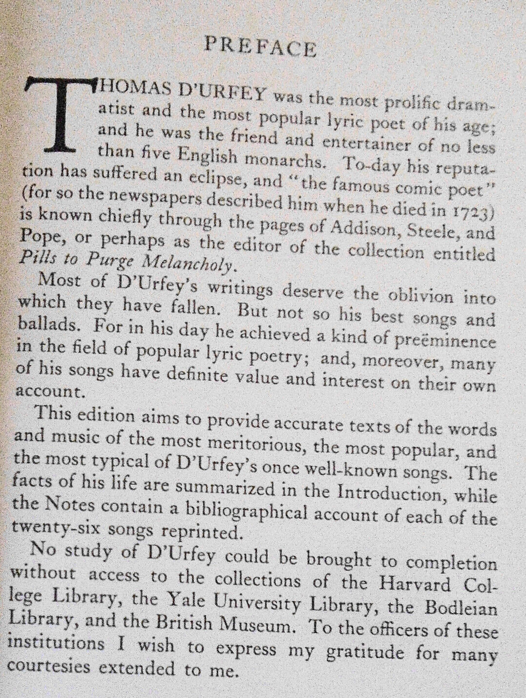 The Songs of Thomas D'Urfey, by Cyrus Lawrence Day. 1933 Hardcover. [Provenance]