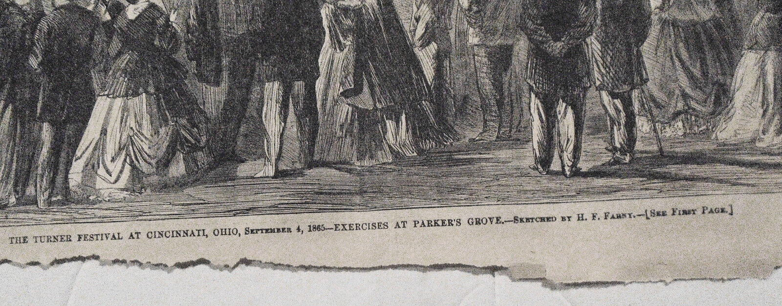 The Turner festival at Cincinnati, Ohio. September 4, 1865 -- exercises at Parker's Grove - sketched by H. F. Farny.