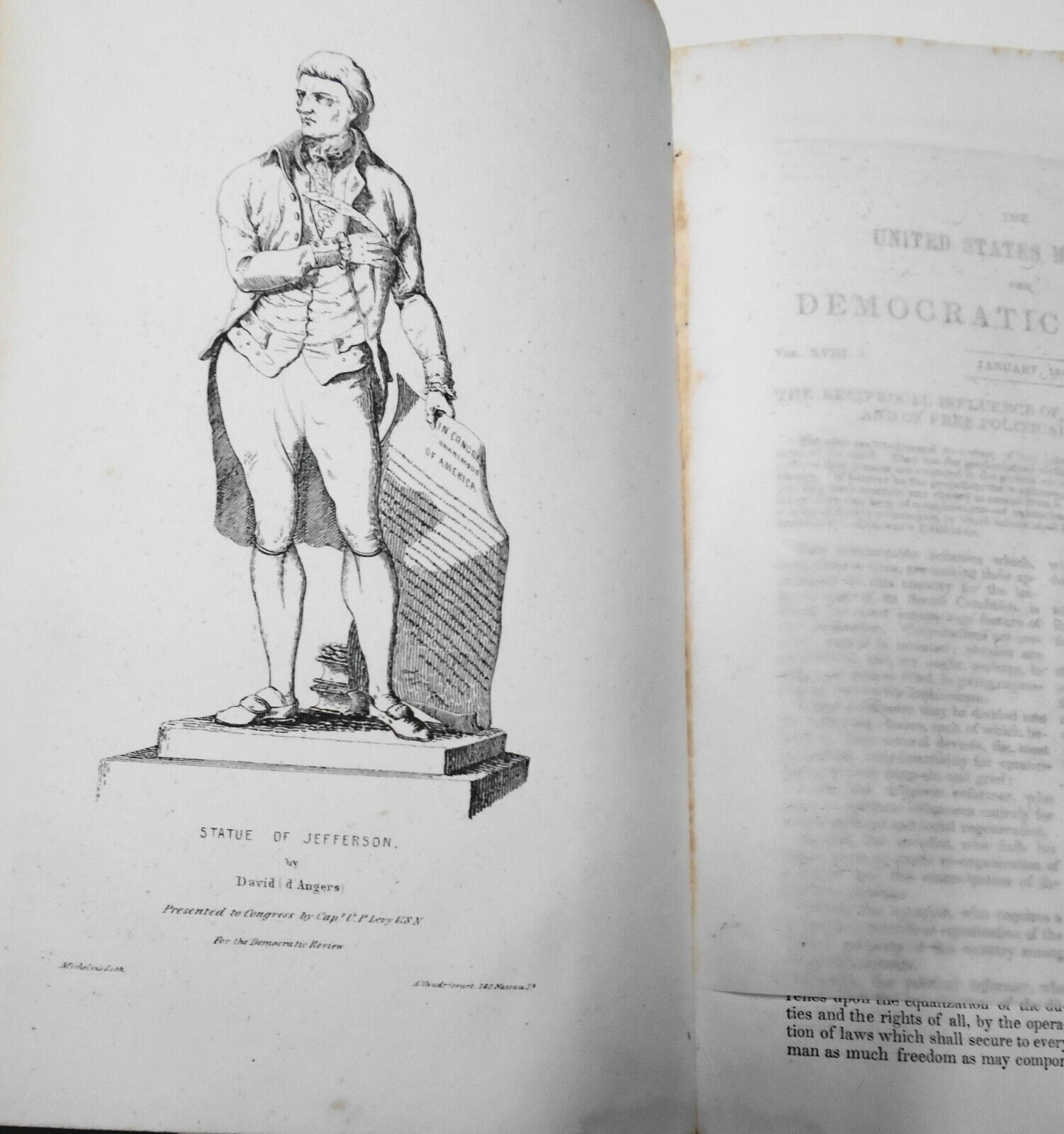 Frontispiece lithograph "Statue of Jefferson" by David D'Angers.