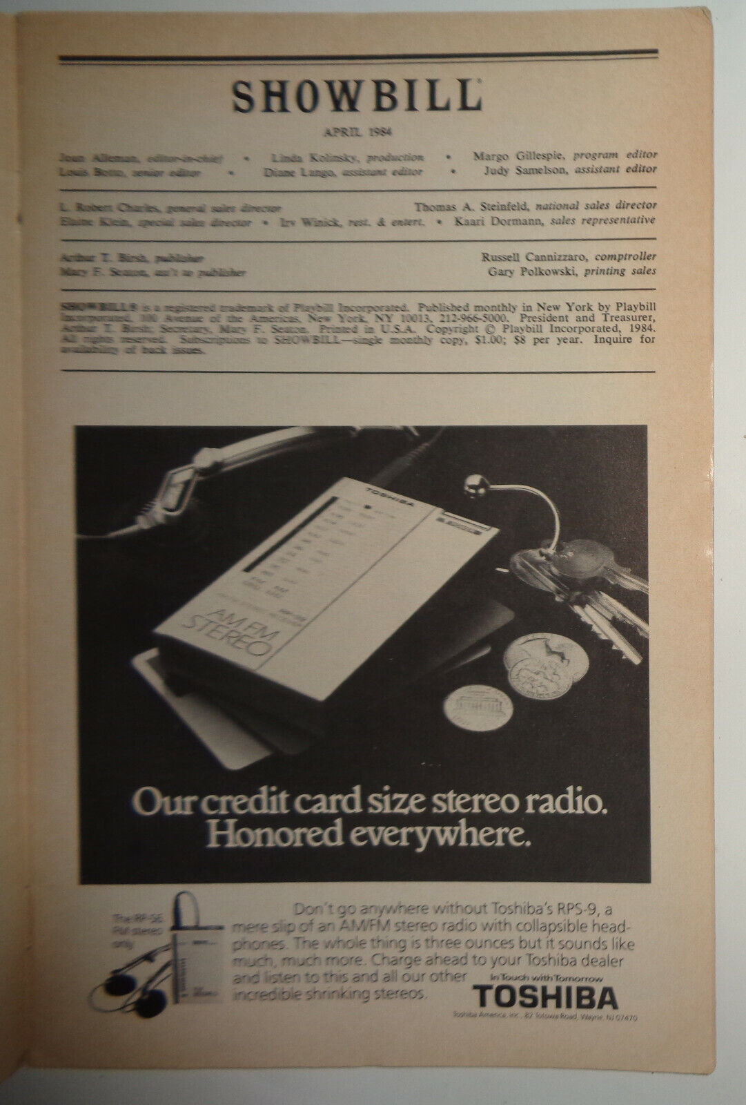 NEW YORK: ASTOR PLACE THEATRE, 1984. Softcover.