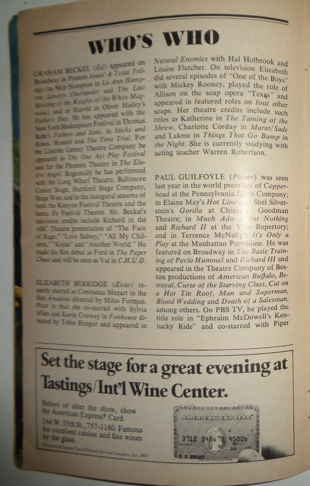 STARRING: GRAHAM BECKEL, ELIZABETH BERRIDGE, PAUL GUILFOYLE, JAYNE HAYNES, ANNE TWOMEY, JOHN VICKERY, ETC...ETC...; 8vo; 34 pages.