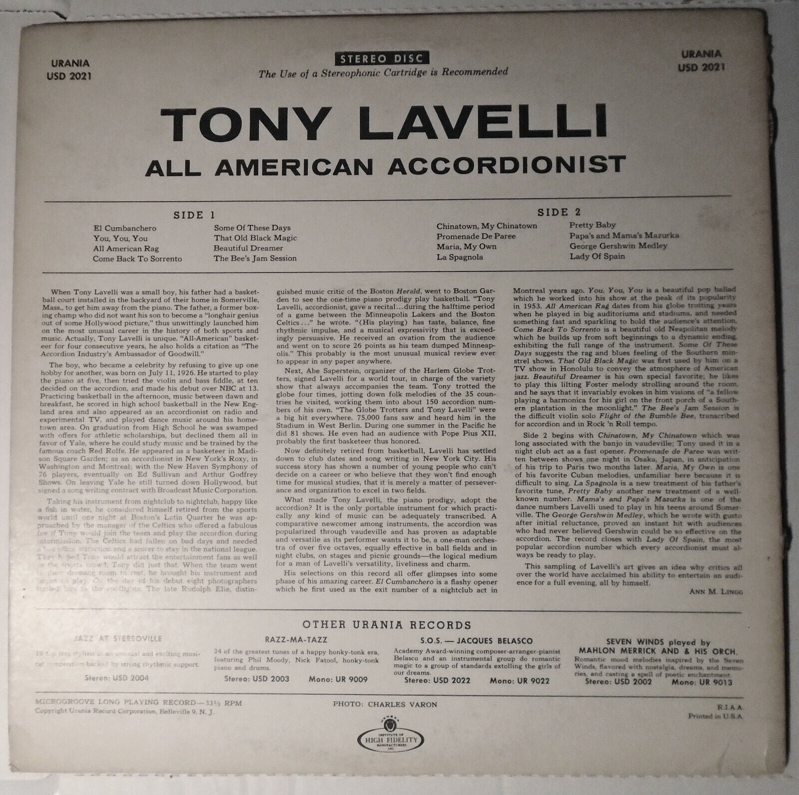 Tony Lavelli : All American Accordionist - Rare LP - Urania USD 2021 [1959]