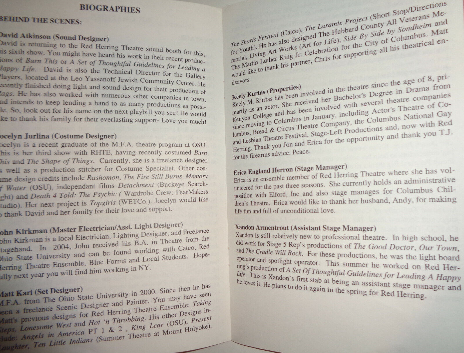 RED HERRING THEATRE ENSEMBLE, 2005. Riffe Center Theatre Complex. Columbus, Ohio. Softcover. F.