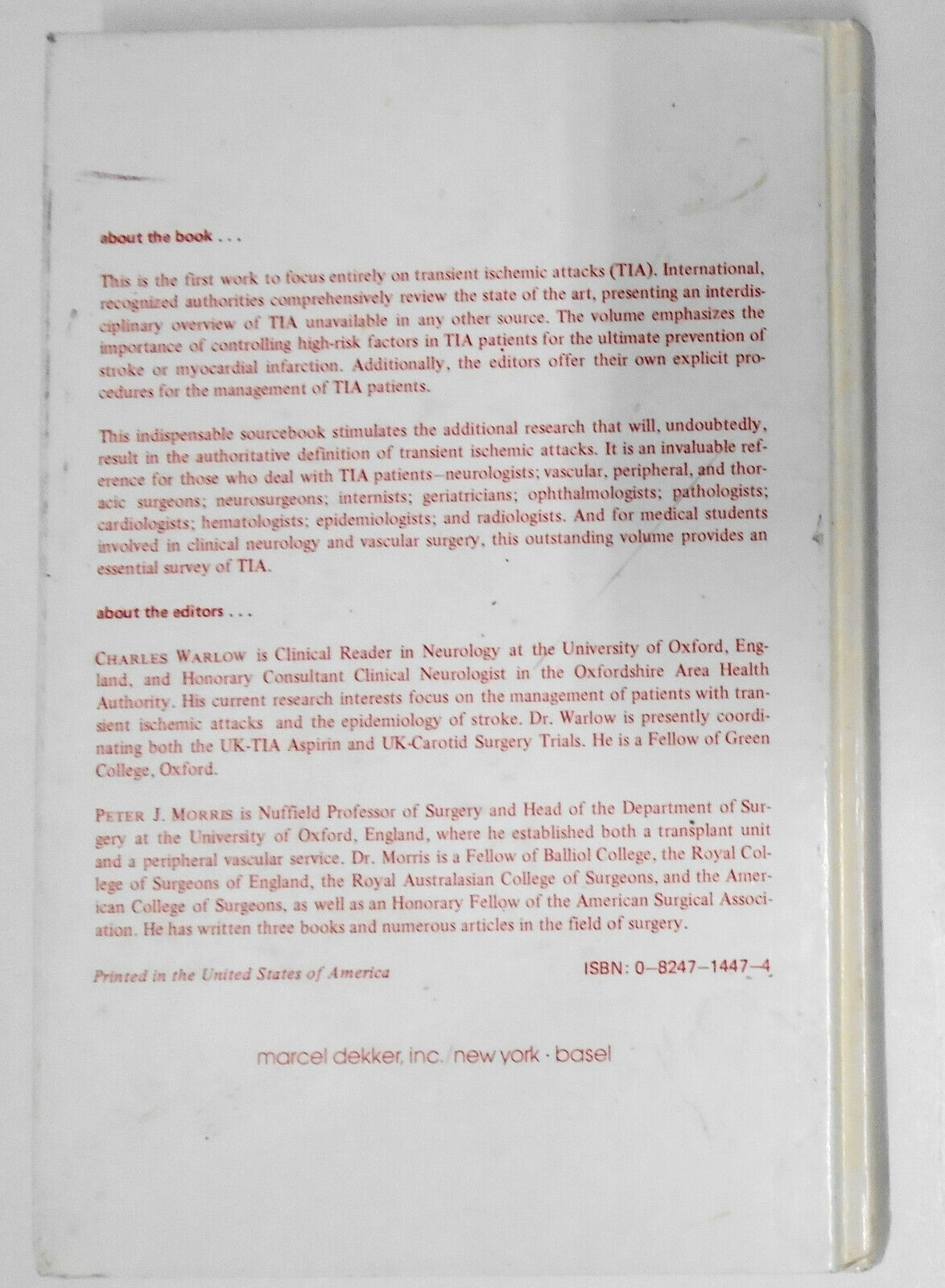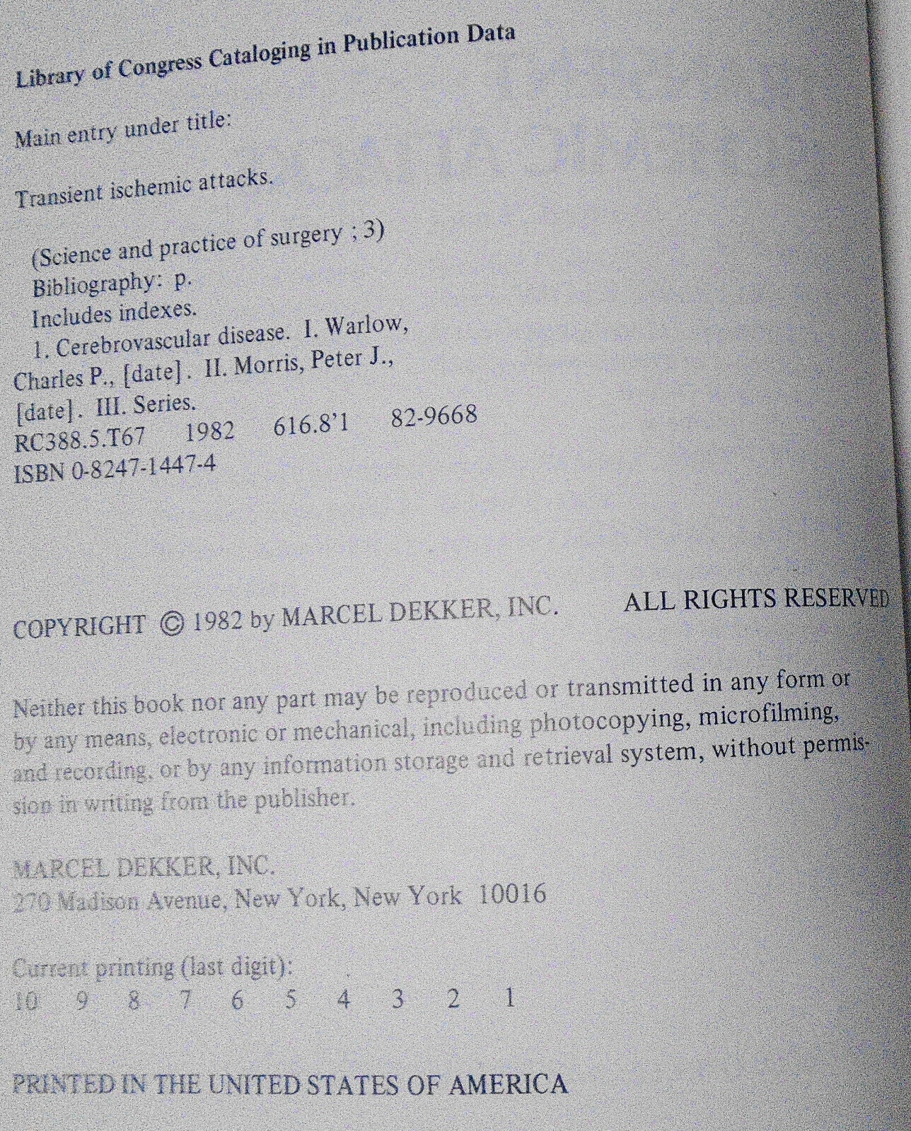 Transient ischemic attacks, ed. by Charles Warlow and Peter J Morris 1982 HC 1st