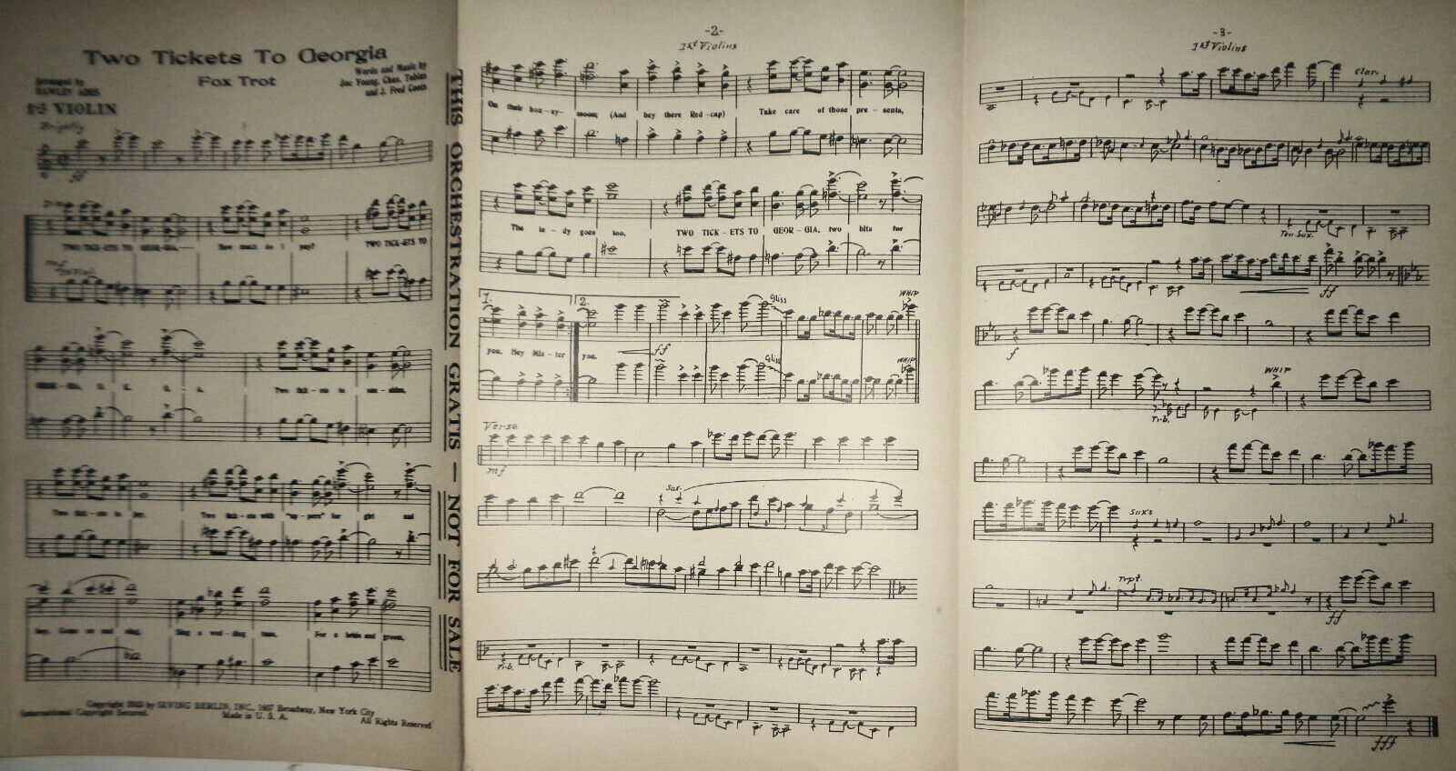 Two tickets to Georgia by Joe Young, Chas Tobias & Fred Coots 1933 for orchestra