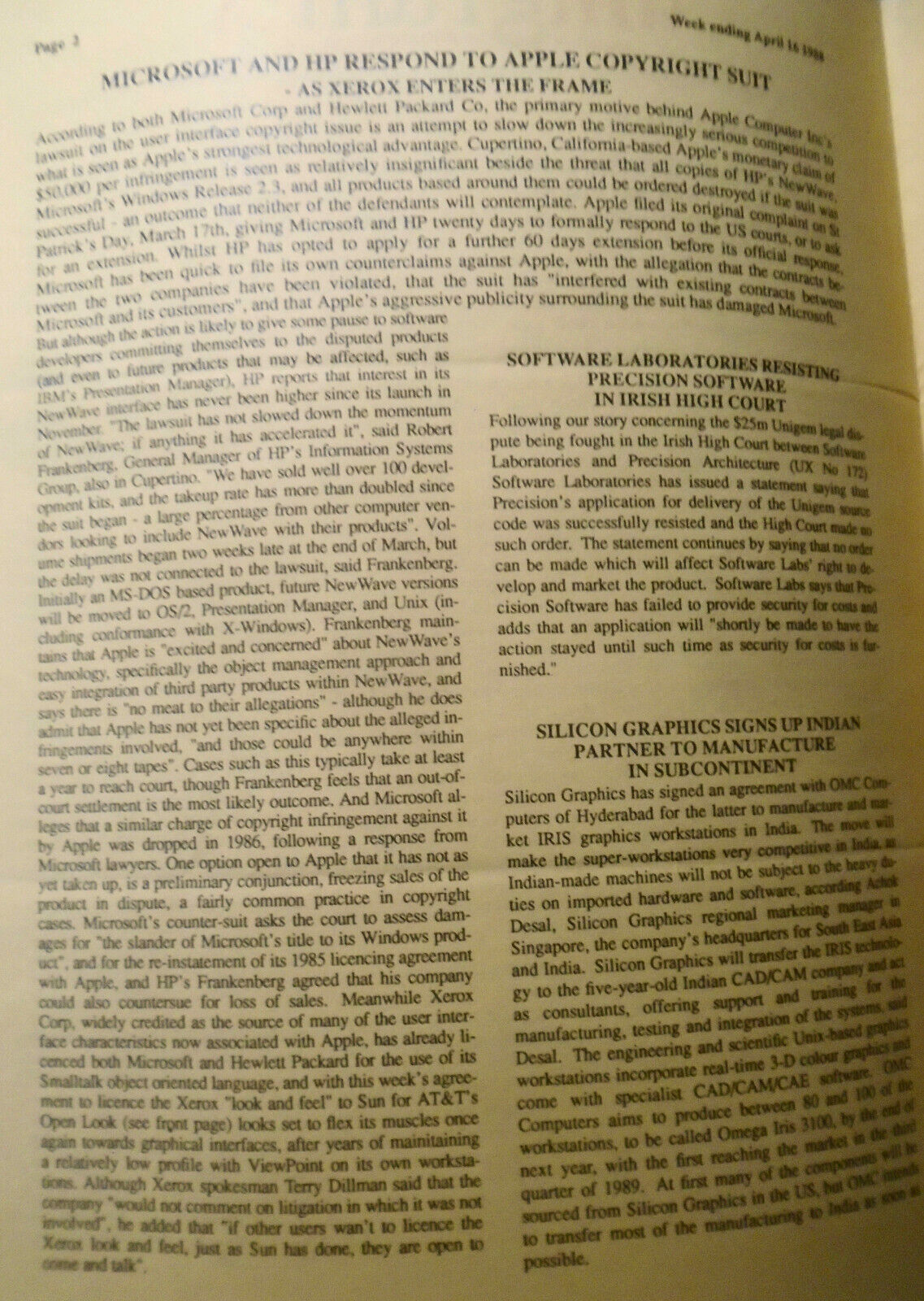 Unigram-X, #175 - April 16, 1988 - London weekly for UNIX manufacturers, et al