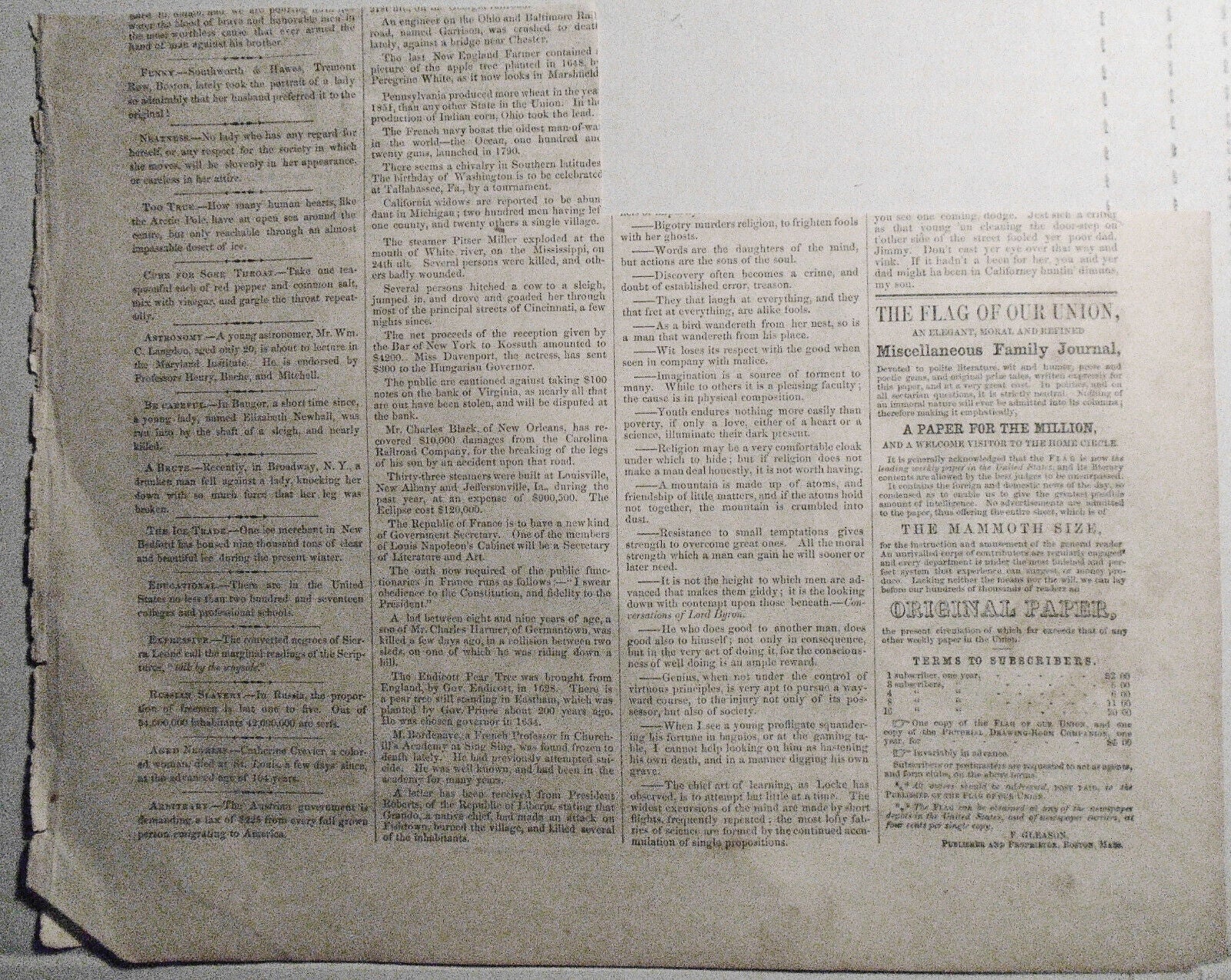 GLEASON'S PICTORIAL - ORIGINAL PRINT: "VIEW AT THE FALLS OF ST. JOHNS RIVER, NEW BRUNSWICK" - STORY & PAGE. - FEB. 21, 1852
