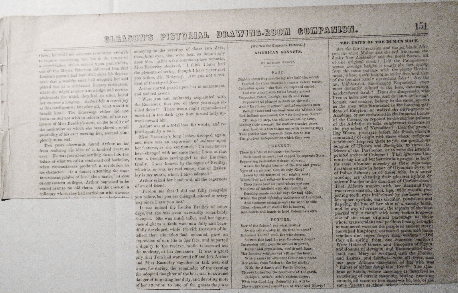 GLEASON'S PICTORIAL DRAWING-ROOM COMPANION - ORIGINAL - STORY & PRINT - "CAPITOL OF MAINE" - 1852