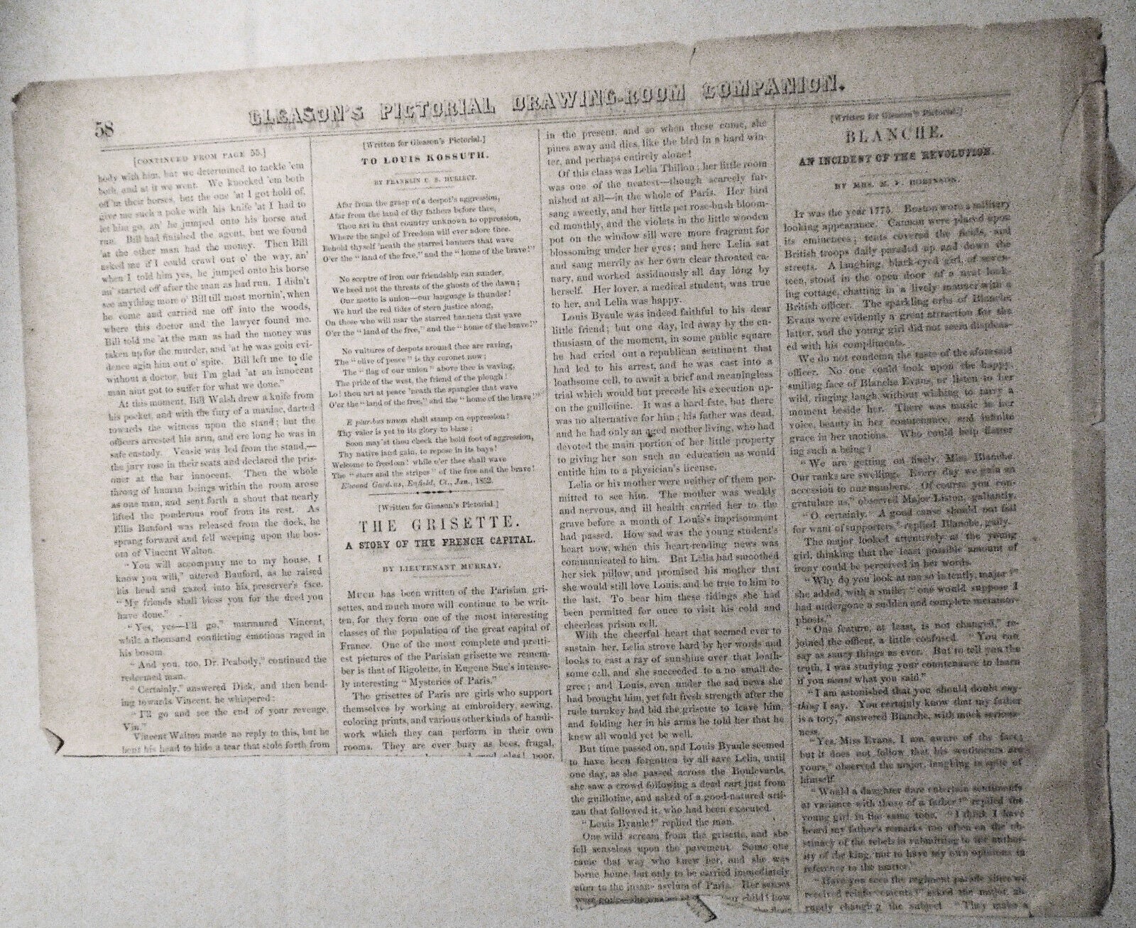 GLEASON'S PICTORIAL DRAWING-ROOM COMPANION - ORIGINAL, STORY AND PRINT - CLEVELAND OHIO - 1850's