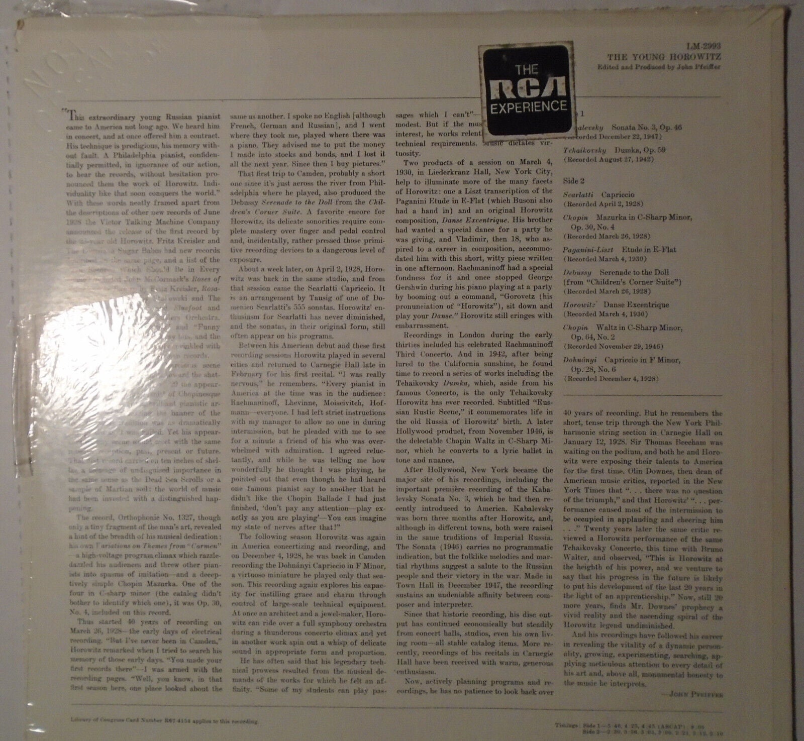 Some tearing on the shrinkwrap of Young Horowitz, but both sealed, never opened.