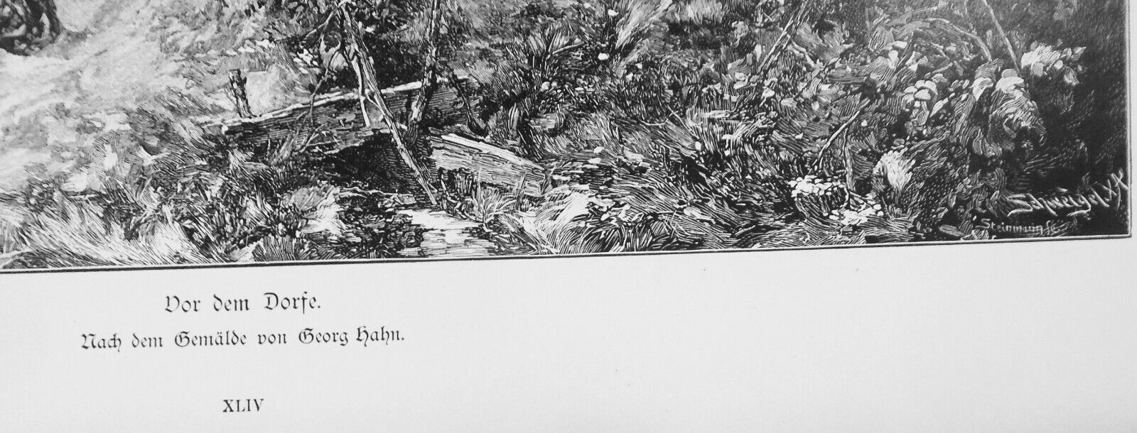 Vor Dem Dorfe, von Georg Hahn - 1886 - Original antique print - 16 x 11 inches