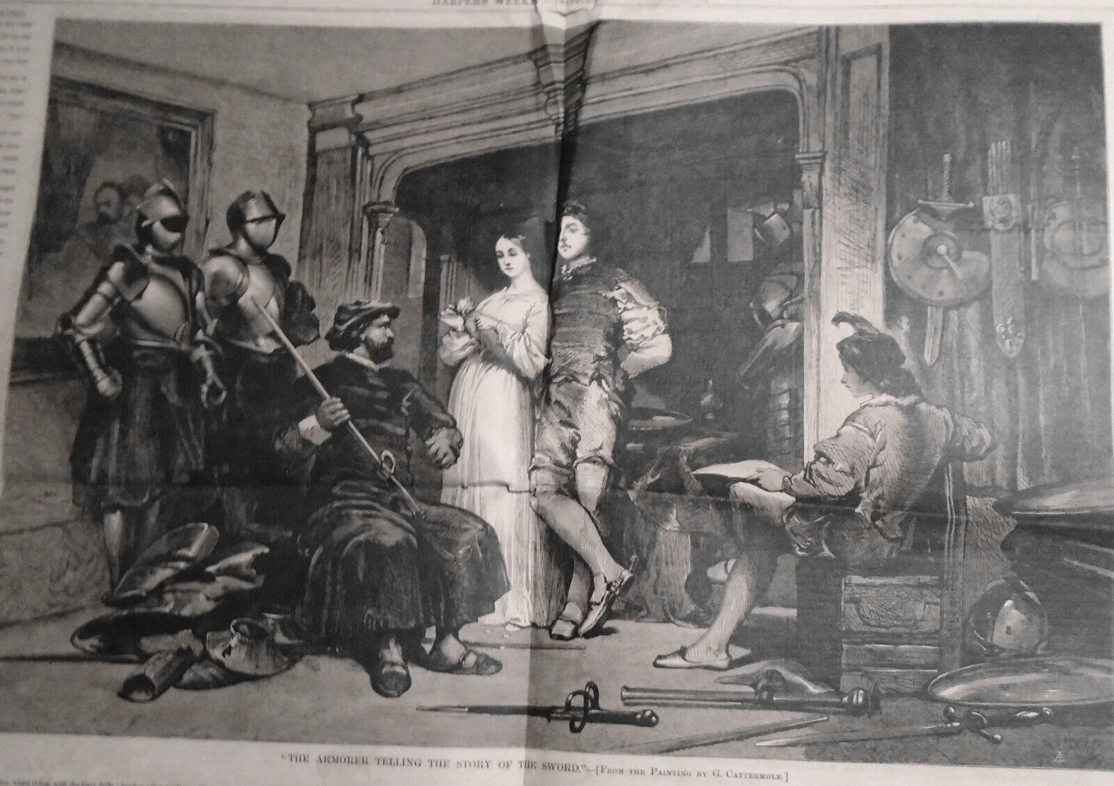ALSO, STORY & DOUBLE PAGE PRINT: "THE ARMORER TELLING THE STORY OF THE SWORD"--(FROM THE PAINTING